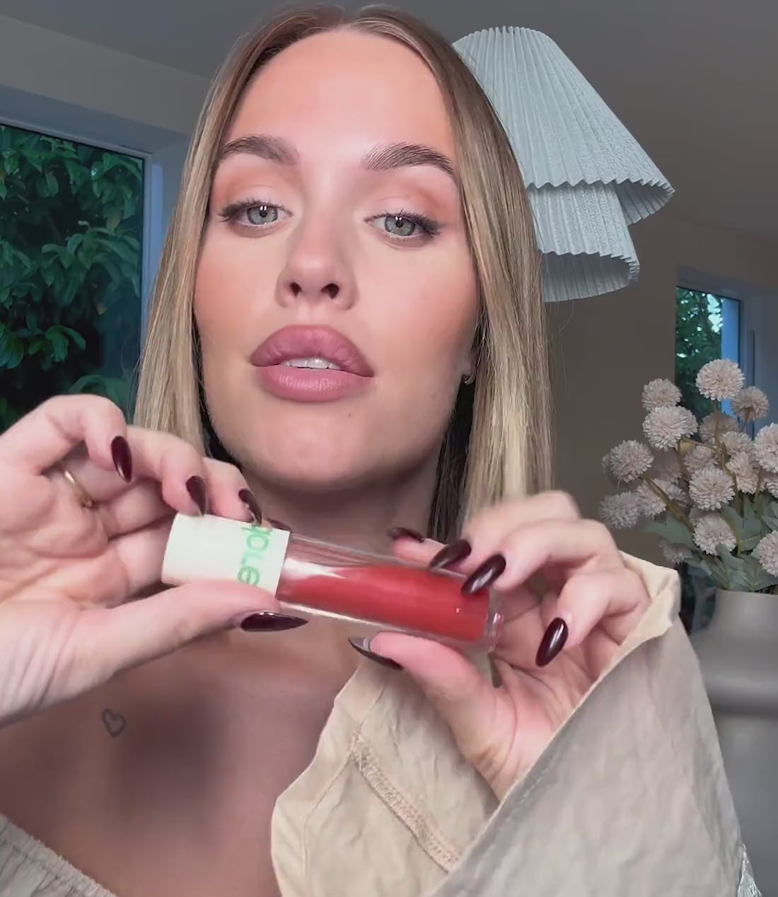 part of my daily lip combo, not sticky, very shiny, smells amazing <33