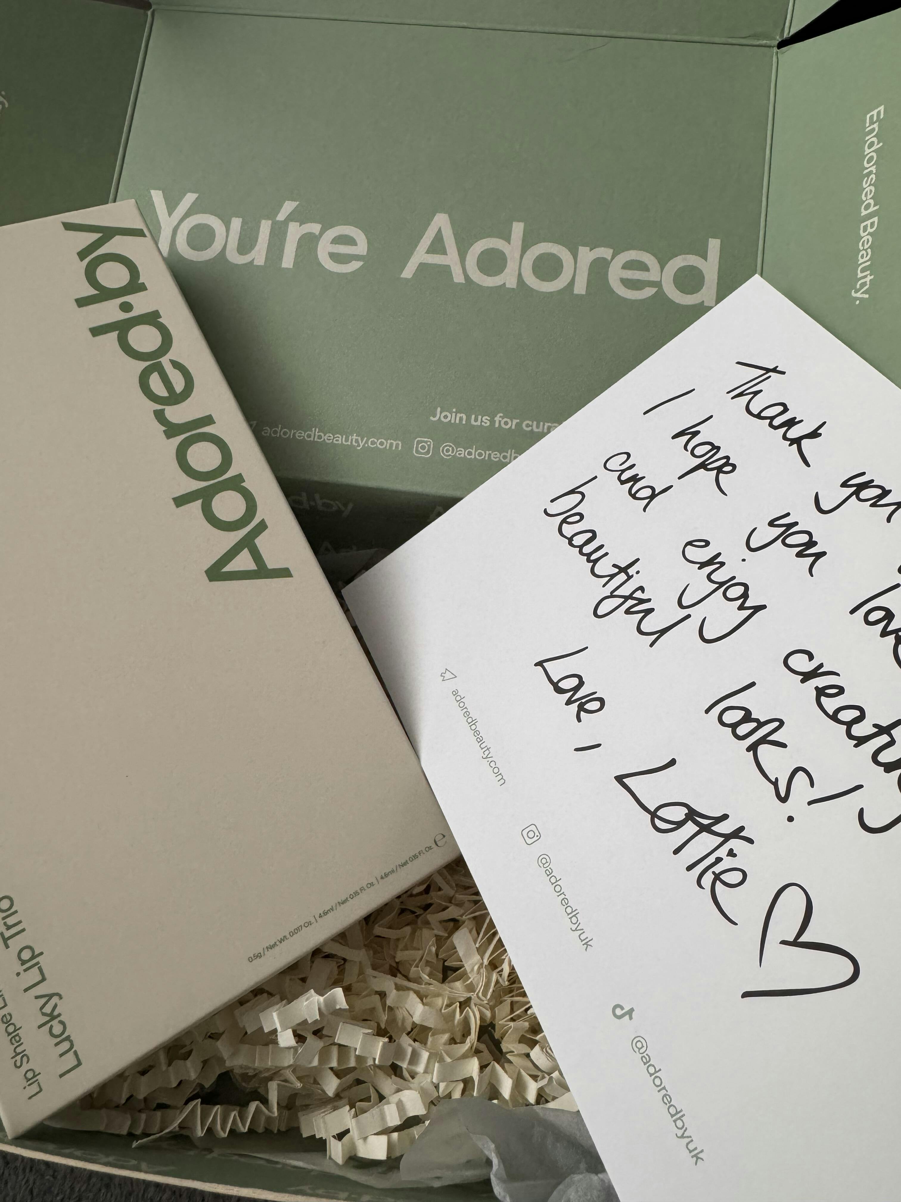I have the trio and im soooo happy with my purchase the lip liner is super soft and beautiful colour the lip gloss omg are amazing the smell the texture and they look incredible on the lips 💋 my lips are super soft and shiny 😍 ✨️ and the application last for a long time! Excellent 👌 value for money.Thank you Adored by!!